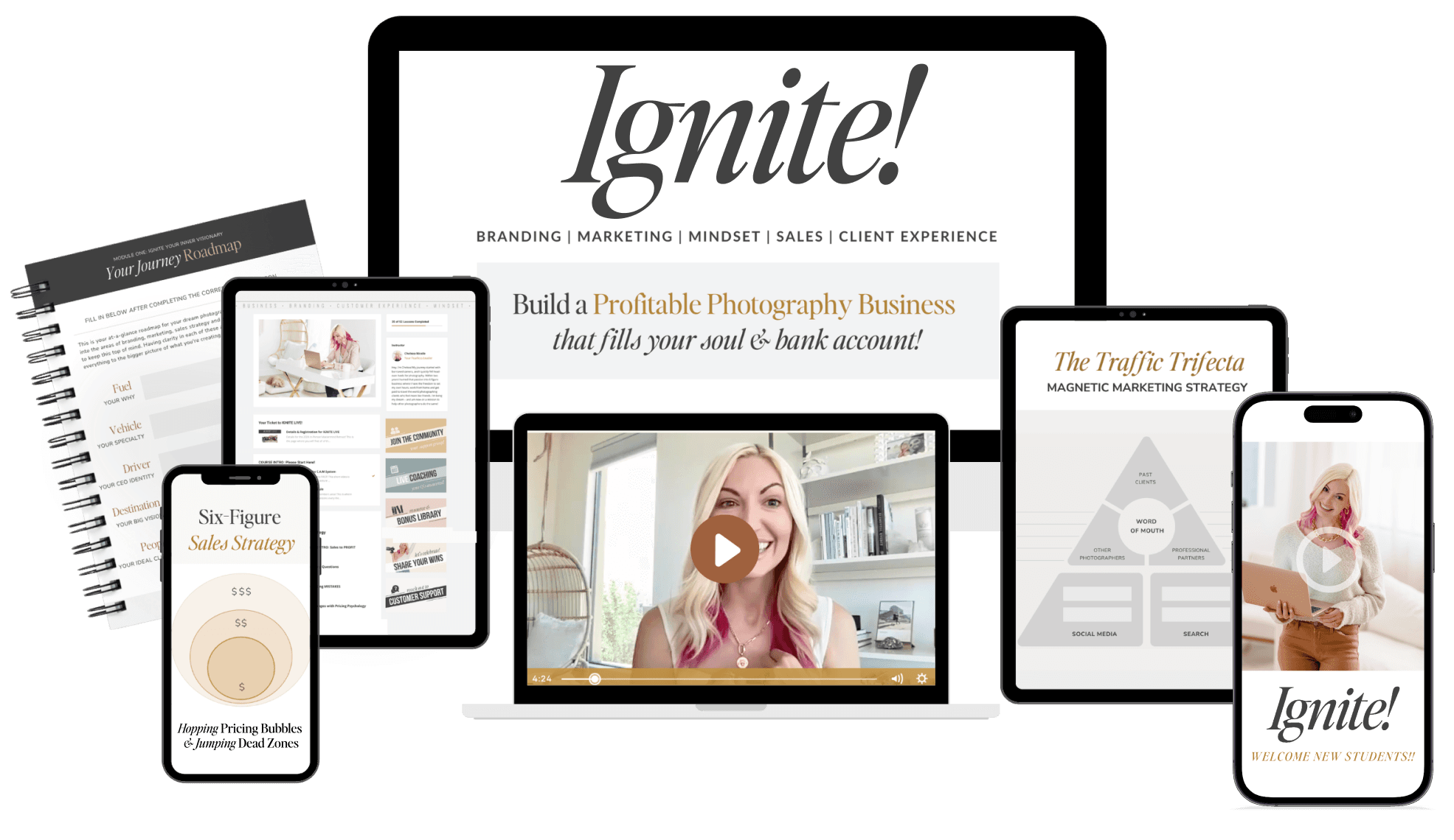 IGNITE is for WEDDING and PORTRAIT photographers wanting to build REAL REVENUE.